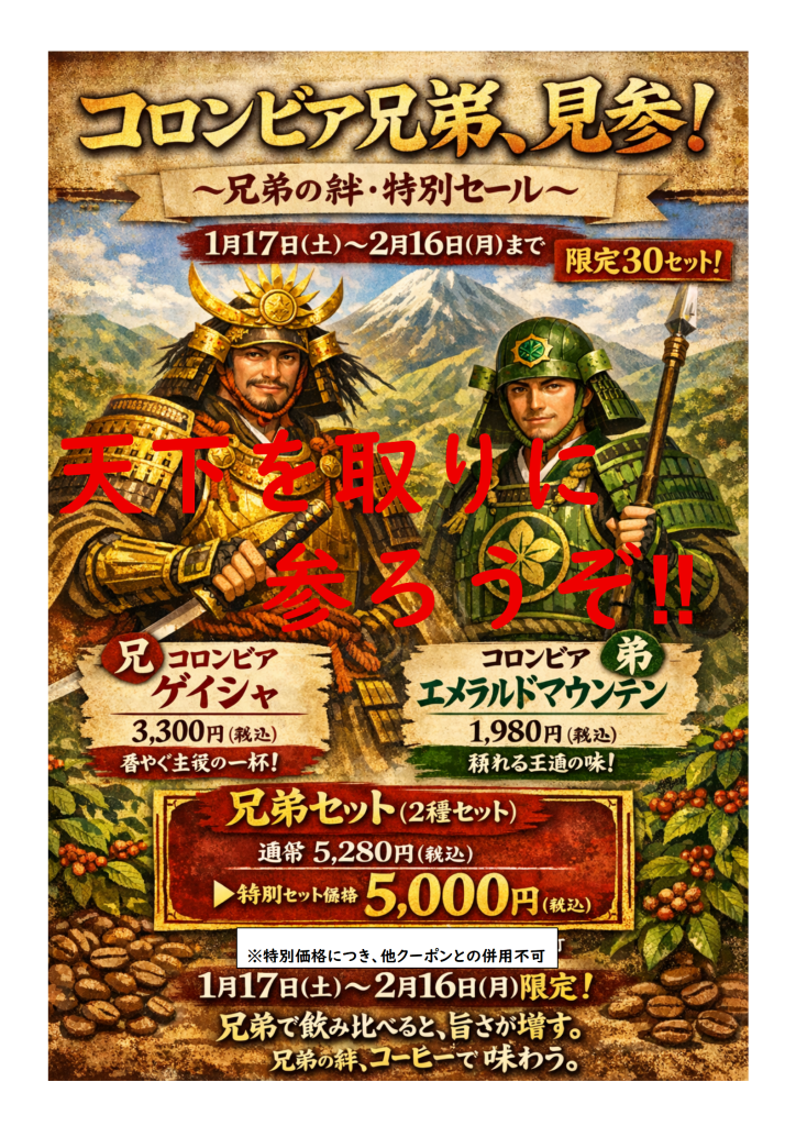 コロンビア兄弟の天下取り「コロンビアゲイシャとエメマン」のセットをお得価格で!